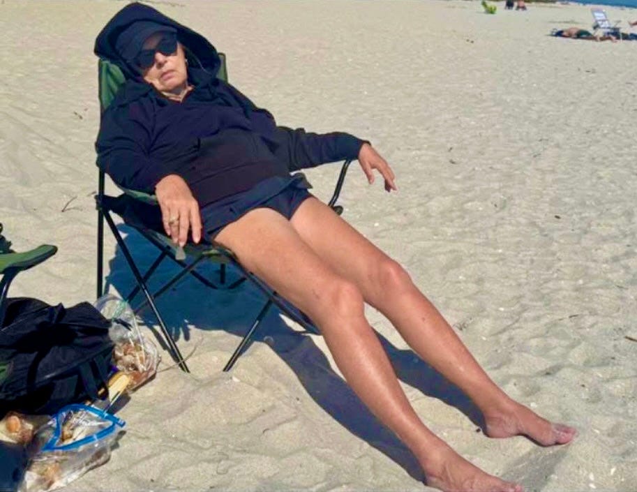 There is good news. On a recent trip to Sanibel my daughter reassured me I still had small legs and looked cute in my hat. I might have to accept the fact that I look a bit more like a fudgsicle than a tootsie pop now, however. When I spotted more joyful people with big tattoos, crooked hips, tummy rolls, and droopy drawers enjoying life on the beach, I remembered a quote my aging mom gave me once that made me feel better: